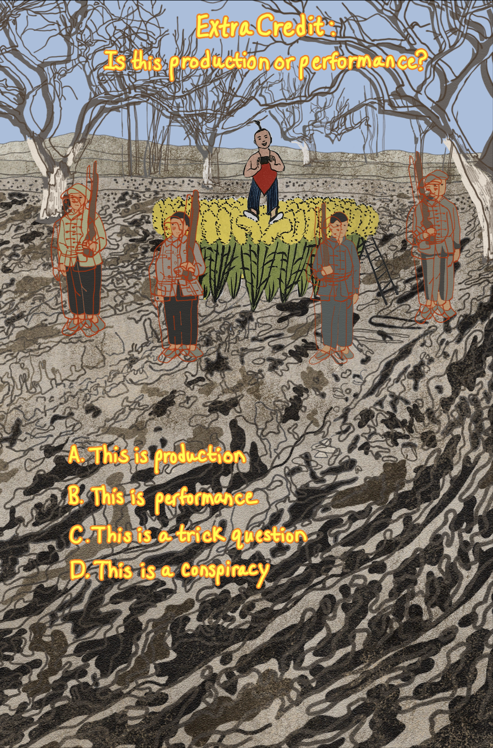 A digital prologue/companion to Siri's artist's book, ZÀO: A History of Chinese Dishcourse through Famine and Revolution, which retells modern Chinese history through faction (fact and fiction). A speculative history, ZÀO satirically reconstructs China’s Mao Era, which saw the worst famine in recorded human history and decades of successful and pervasive ideological indoctrination. Notwithstanding the cumulative death toll through famine and civil violence of 20-63 million people, the ravages of this tumultuous political era continue to be censored in mainland China and have eluded western public discourse. In its exhumation of massive historical trauma concealed beneath exuberant propaganda, ZÀO deploys myriad strategies: archival images, original historical research, personal memoir, fictional storyline, bilingual (mis)translation, critical analysis, and hand-drawn illustrations.